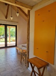 Es hat einen großen Wohn- Schlafraum mit einer kleinen Küche und ein separates Bad mit Dusche.